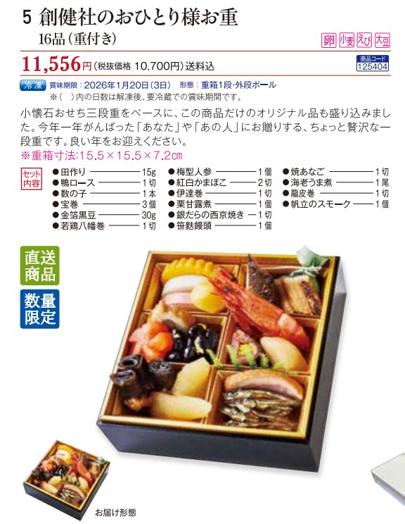› 【数量限定】5.創健社のおひとり様お重16品(重付き)/12月30日お届け