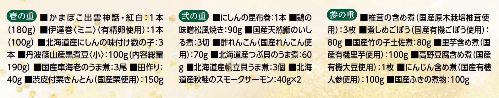 ご家庭で盛り付け例等を参照され、お重等に盛り付けてください。